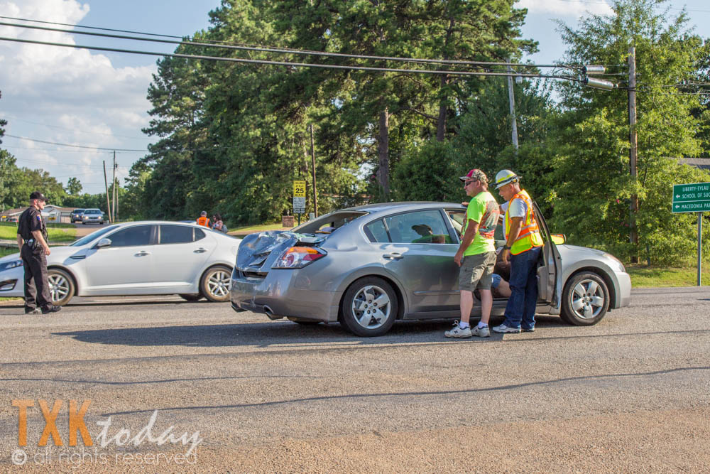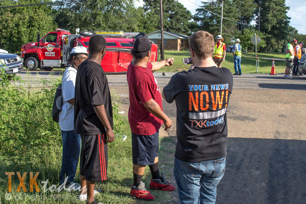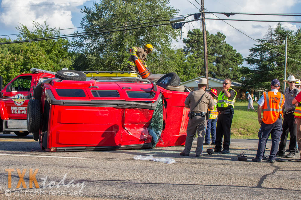 5:30 P.M. LE, Wake Village, & Redwater Fire Departments were on scene of a 3 vehicle accident that occurred on Highway 67 at Macedonia Rd. One vehicle flipped into the middle turning lane and according to radio traffic a woman was trapped inside.