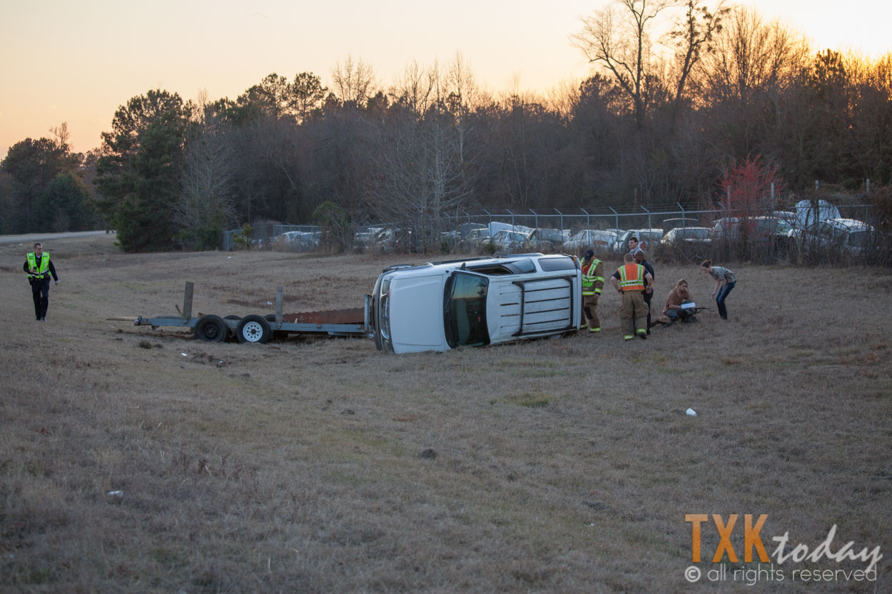Tuesday 5:00 p.m. | Texarkana, Arkansas Fire Department and Police were on scene of a singe vehicle rollover accident on the access road between Highway 71 and Loop 151.