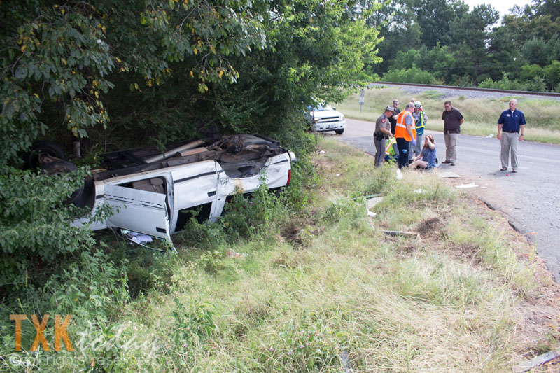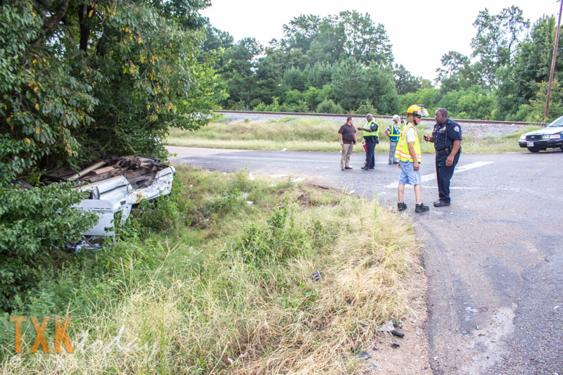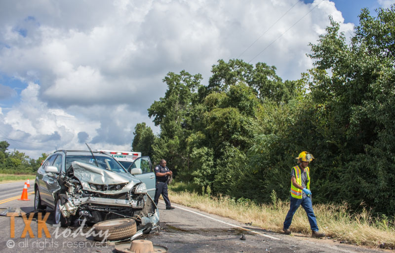 The two vehicles collided for unknown reasons sending one off the road and rolling into the trees. One vehicle appeared to be an LEISD vehicle. Numerous LEISD police and administrators were on scene along with LEVFD and Texas DPS Troopers. The condition of the two drivers is unknown at this time although injuries did not appear to be life threatening. There was also a dog in one vehicle who was uninjured and being looked after by fire fighters.
