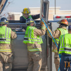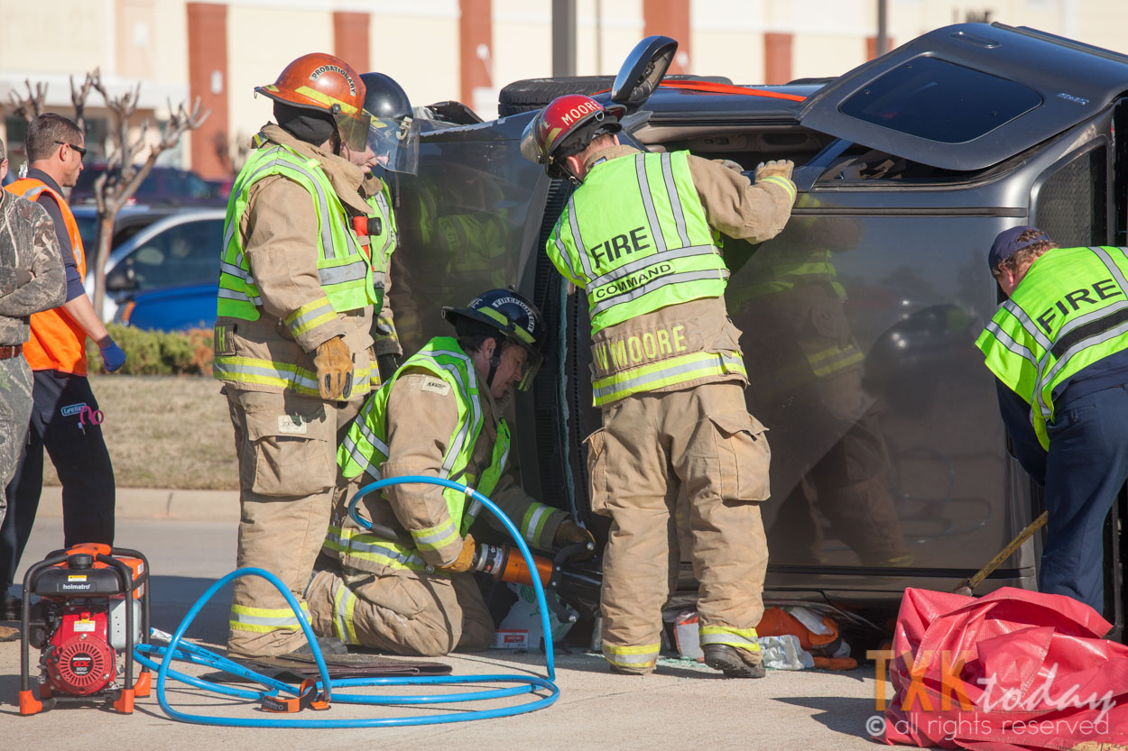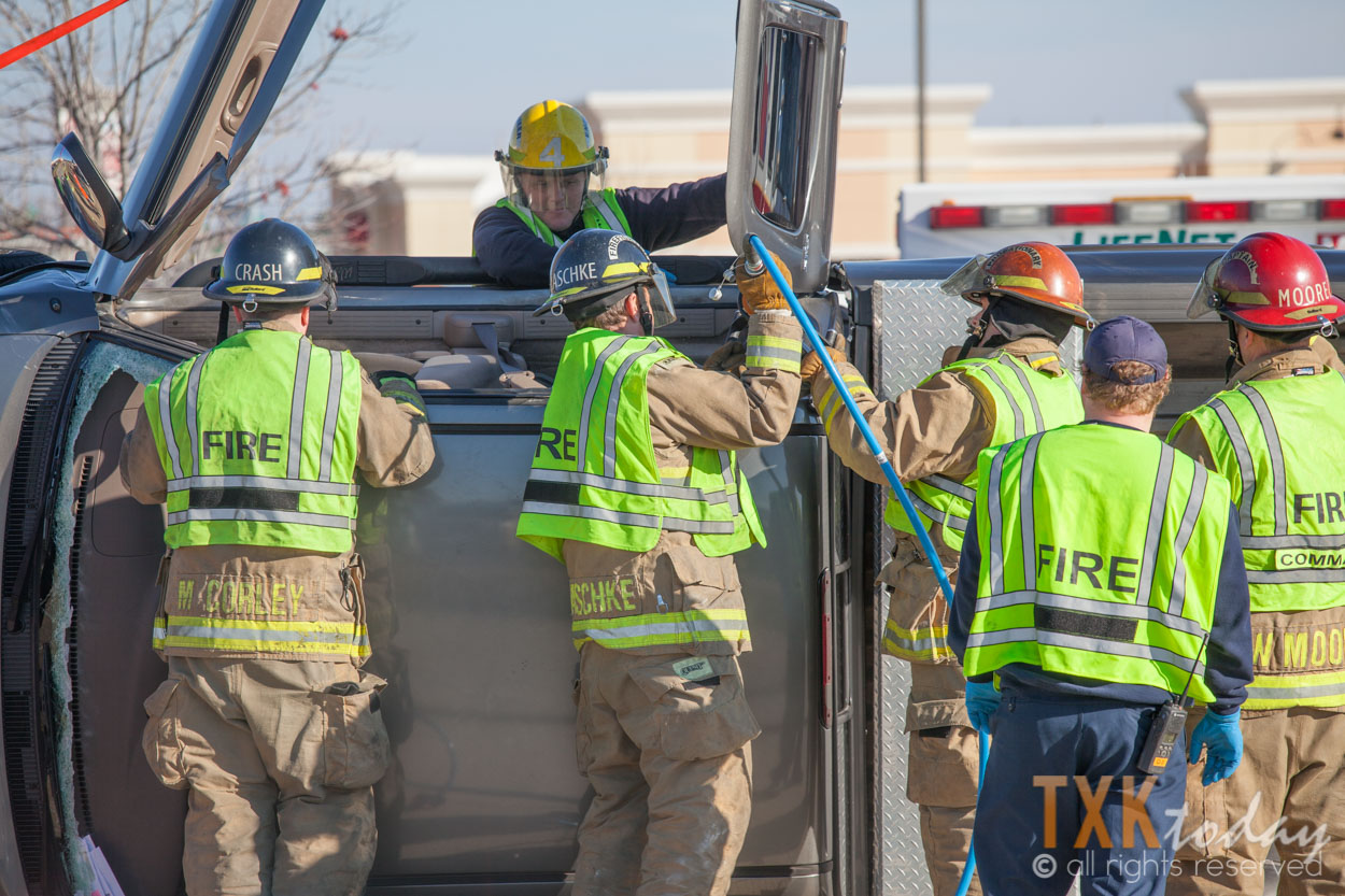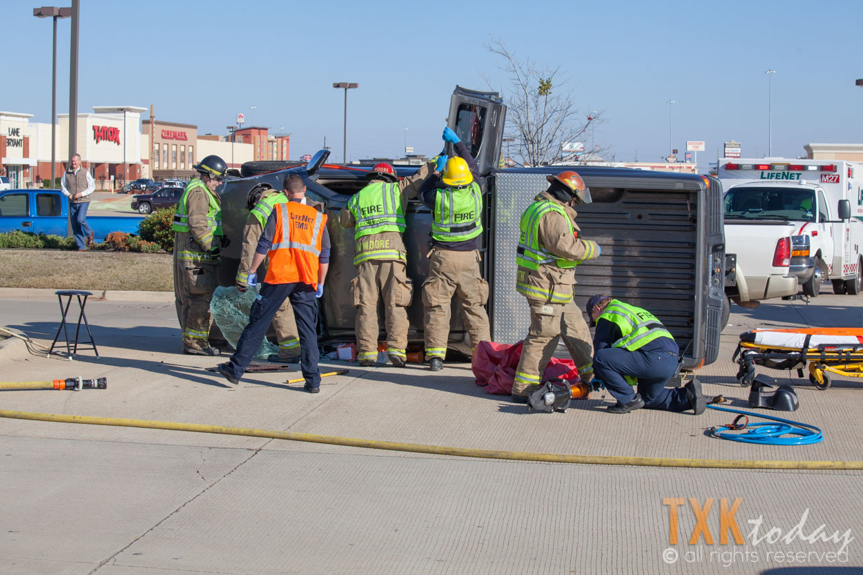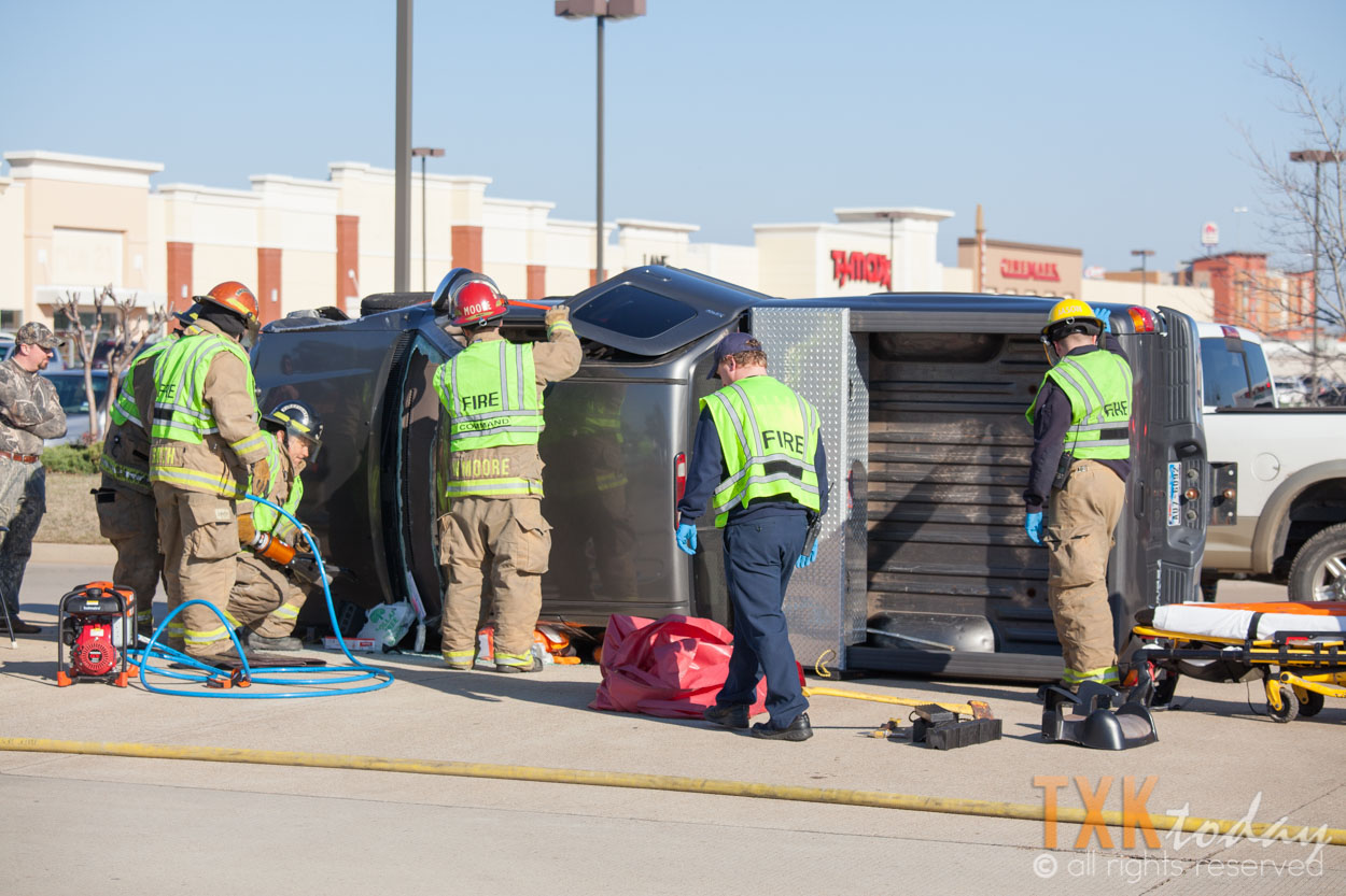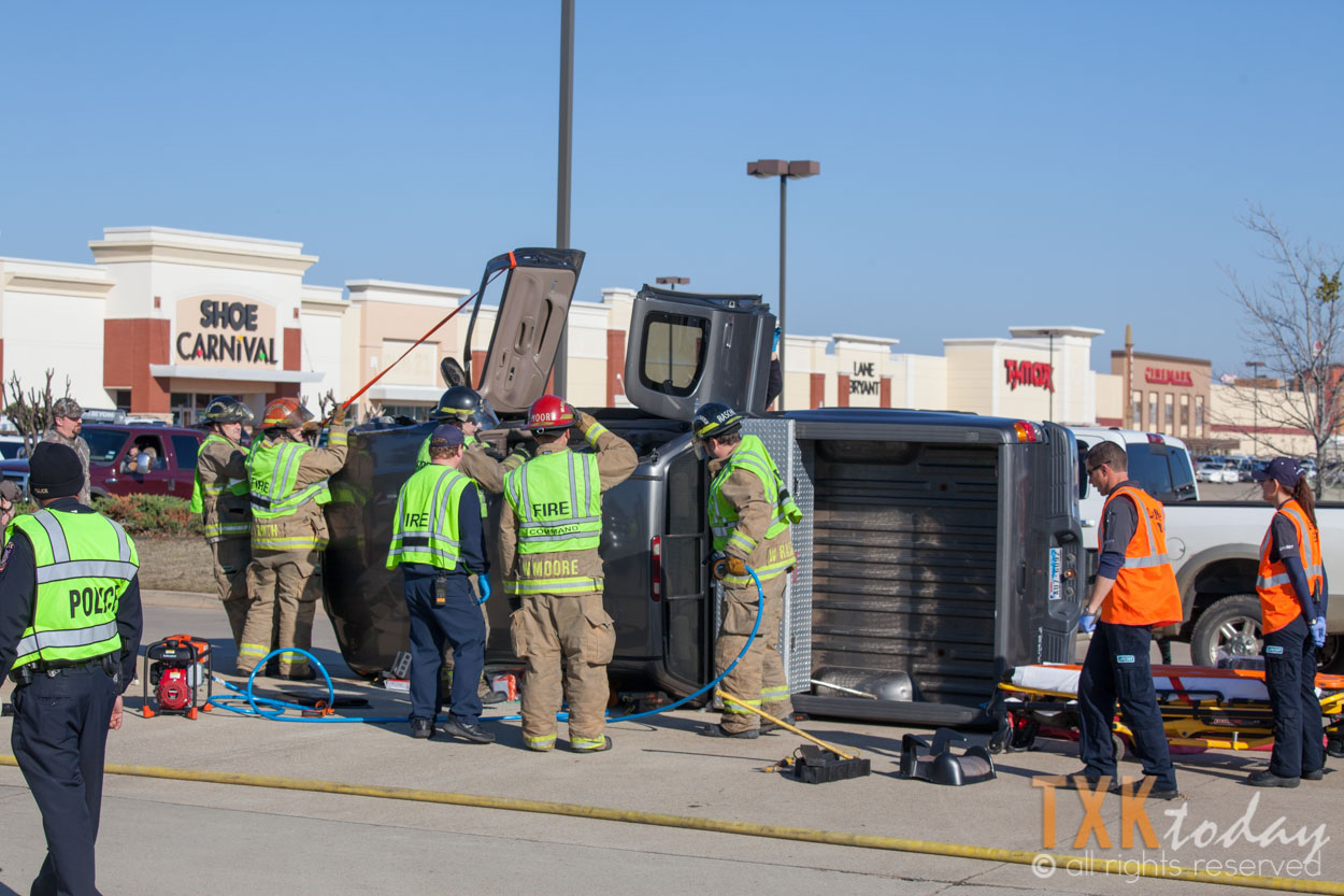Texarkana, Texas Firefighters were quickly on scene and stabilized the vehicle. Firemen used hydraulic rescue tools to remove the roof of the truck to gain access to the driver.