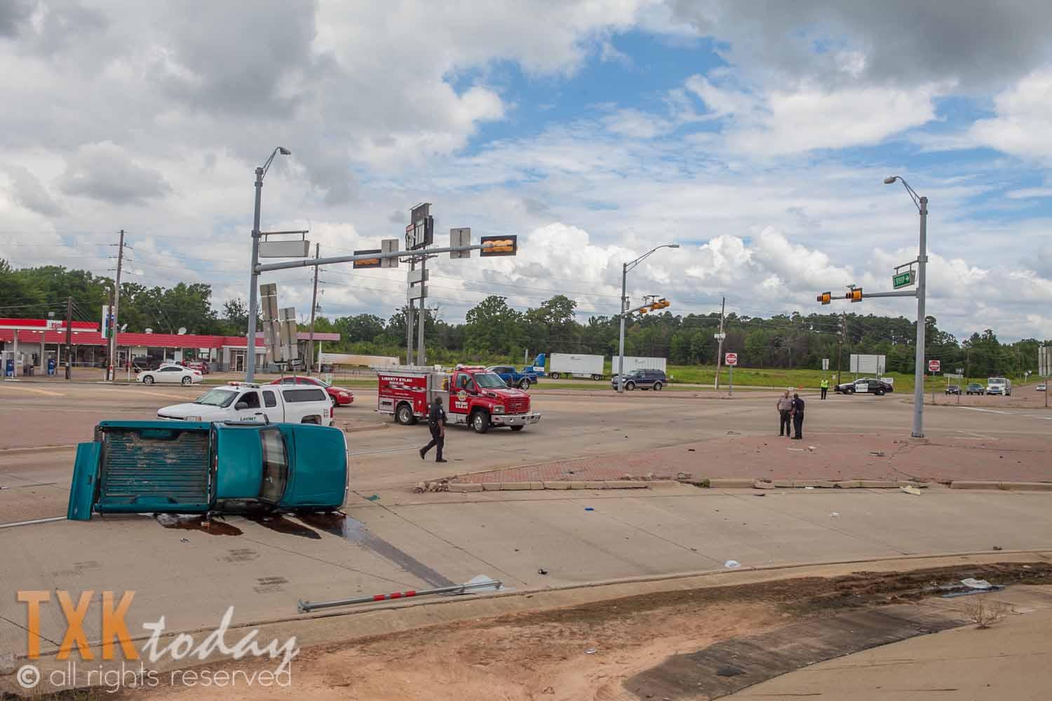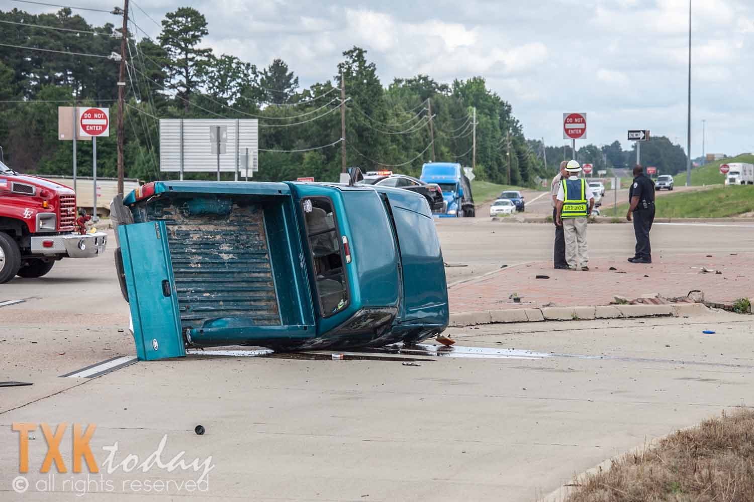 The drive of the overturned vehicle was assisted out of the vehicle by two other motorist not involved. They claimed his injuries appeared to be minor.