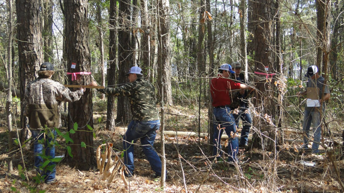 Employees of the Texas Forest Service help to facilitate the competition along with
