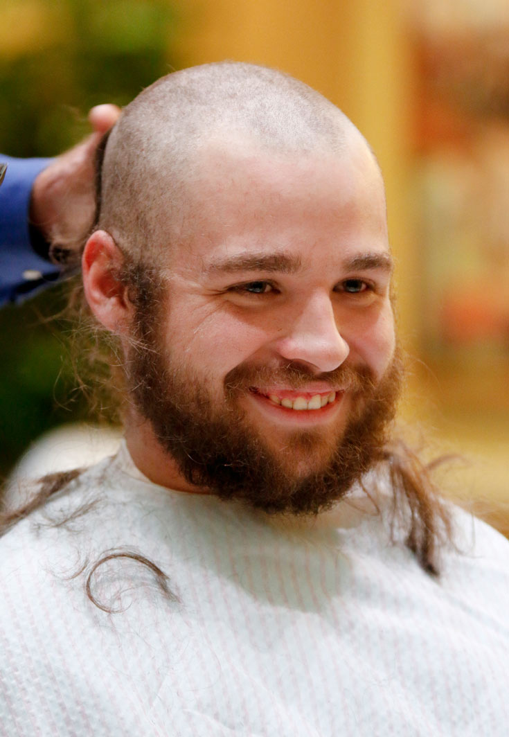 Joe Weeks of the College Barber Shop not only donated $20 toward the cause, but also his time in shaving the students’ heads.