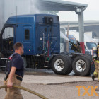 A semi-truck was heavily damaged by fire Monday afternoon at Ryder Truck Rental and Maintenance in the 5100 block of Garland Avenue.