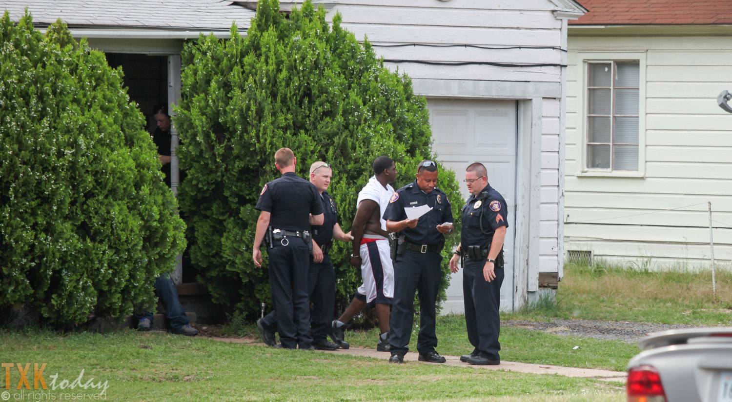 According to Aaron Brower Texarkana,Texas Public Information Officer three people at the house were arrested over prior warrants. Texarkana Texas Police Crime Scene Unit is currently on scene investigating. Officers could be seen going through the trash can on the street.