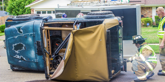 The rollover occurred when a woman was traveling west on Colorado Street, clipping a trailer that was parked on the side of the road causing her 1994 Jeep to flip on its side.