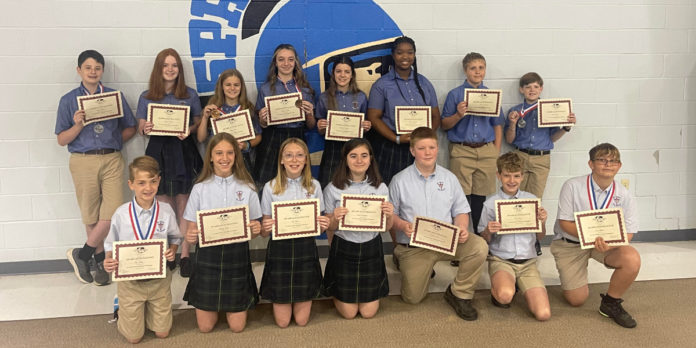 St. James Science Olympiad team was invited to the state tournament in College Station, Texas. Their team went up against teams from schools that would be in the 6A+ category for size in Texas! St. James received 11th overall for a school their size. “Our small East Texas Private School took on 30 schools from across Texas and Placed 11th! We are extremely proud of them,” said Lindsey Looney.
