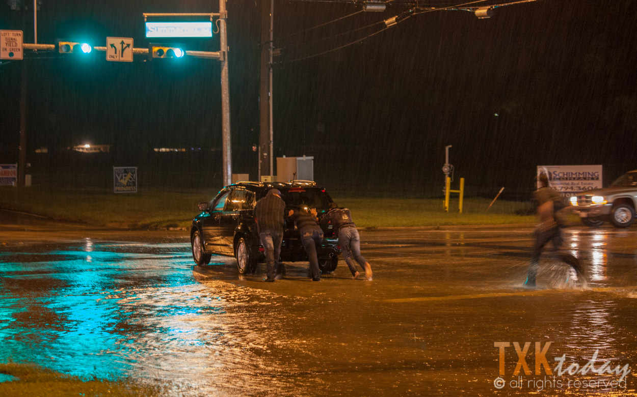 Texarkana area police were kept busy responding to motorists stalled in deep water on area roads Friday evening.