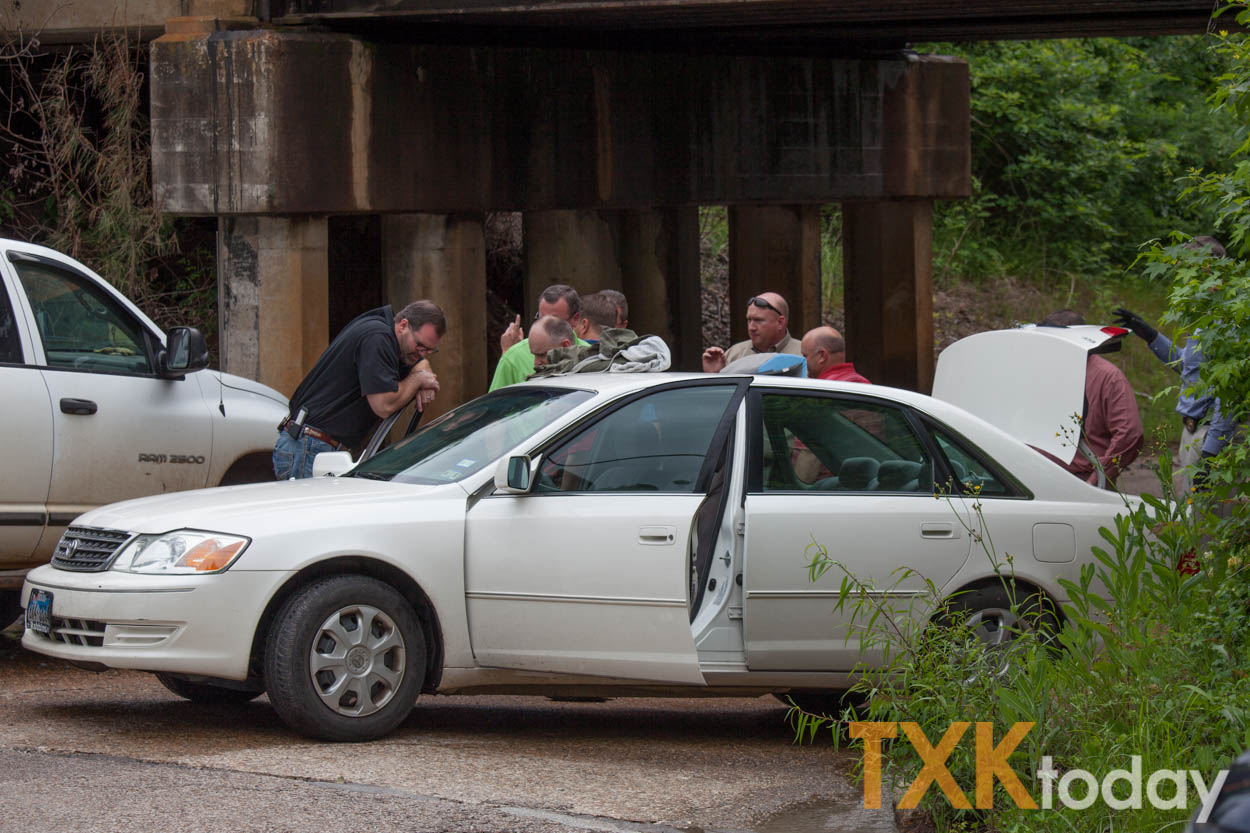 According to radio traffic the car was spotted by Bowie County Investigators on Dooley Ferry Rd. Friday afternoon. Bowie County Investigators in unmarked vehicles and TAPD patrol units made the final stop at the three way intersection at Dooley Ferry Rd and Mandeville Road.