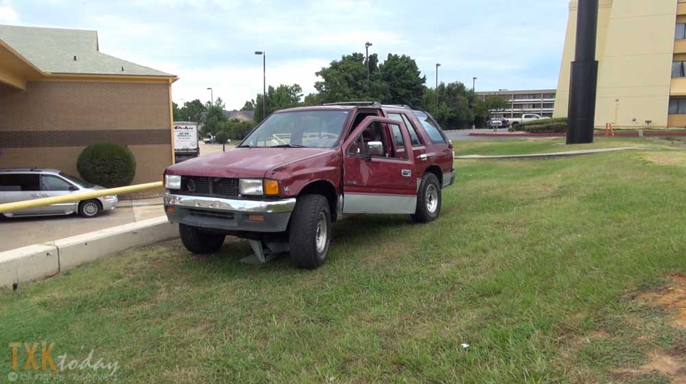 7:00 A.M. Friday | Texarkana, Arkansas Police officers were on scene of a car wrecked out on top of a windstream telephone box behind Dennys restaurant.