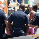 Officers visited apartment complexes around the city. Escorting the snow cone van into the complexes with lights and sirens blaring children came running from all directions.