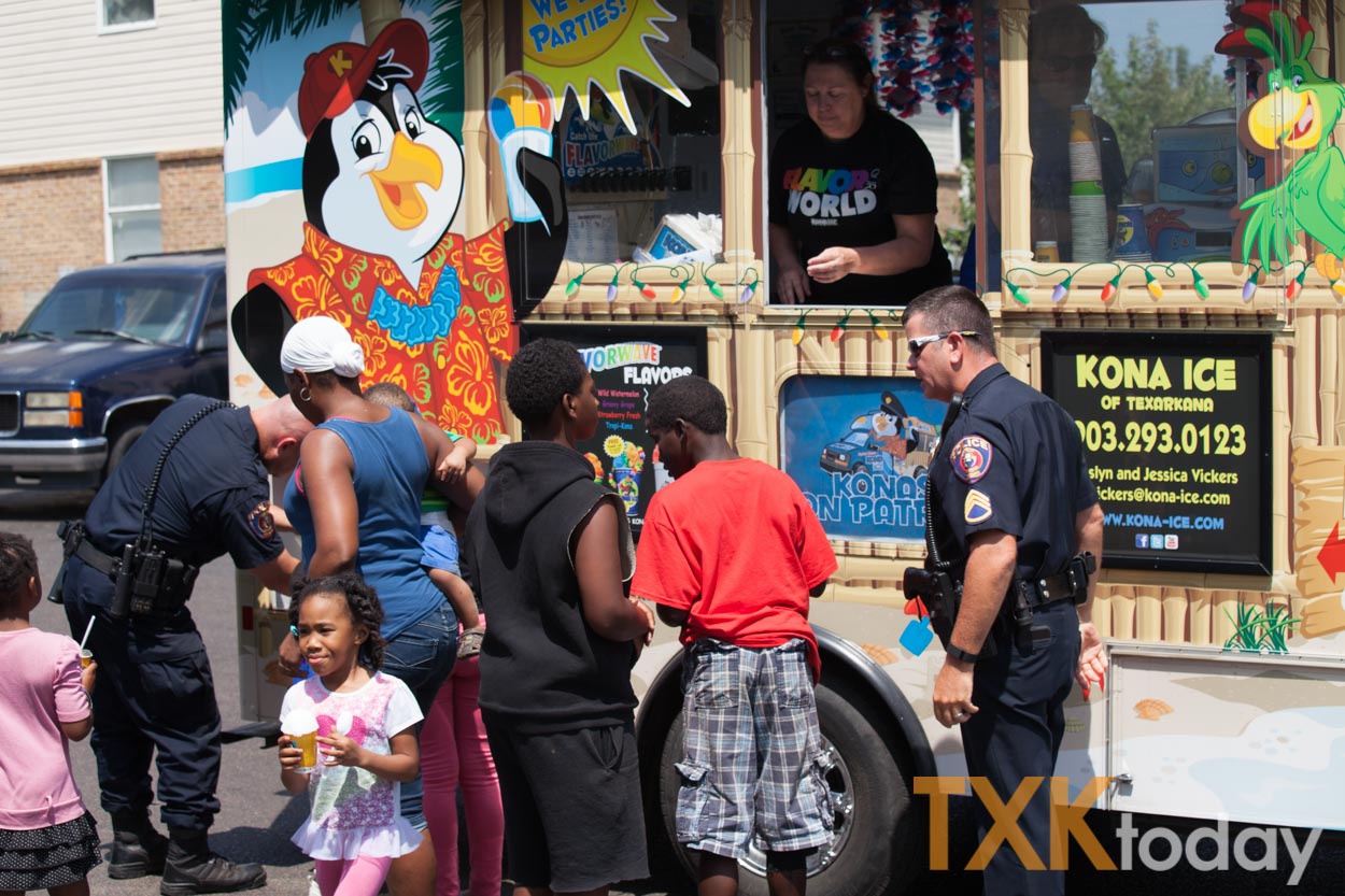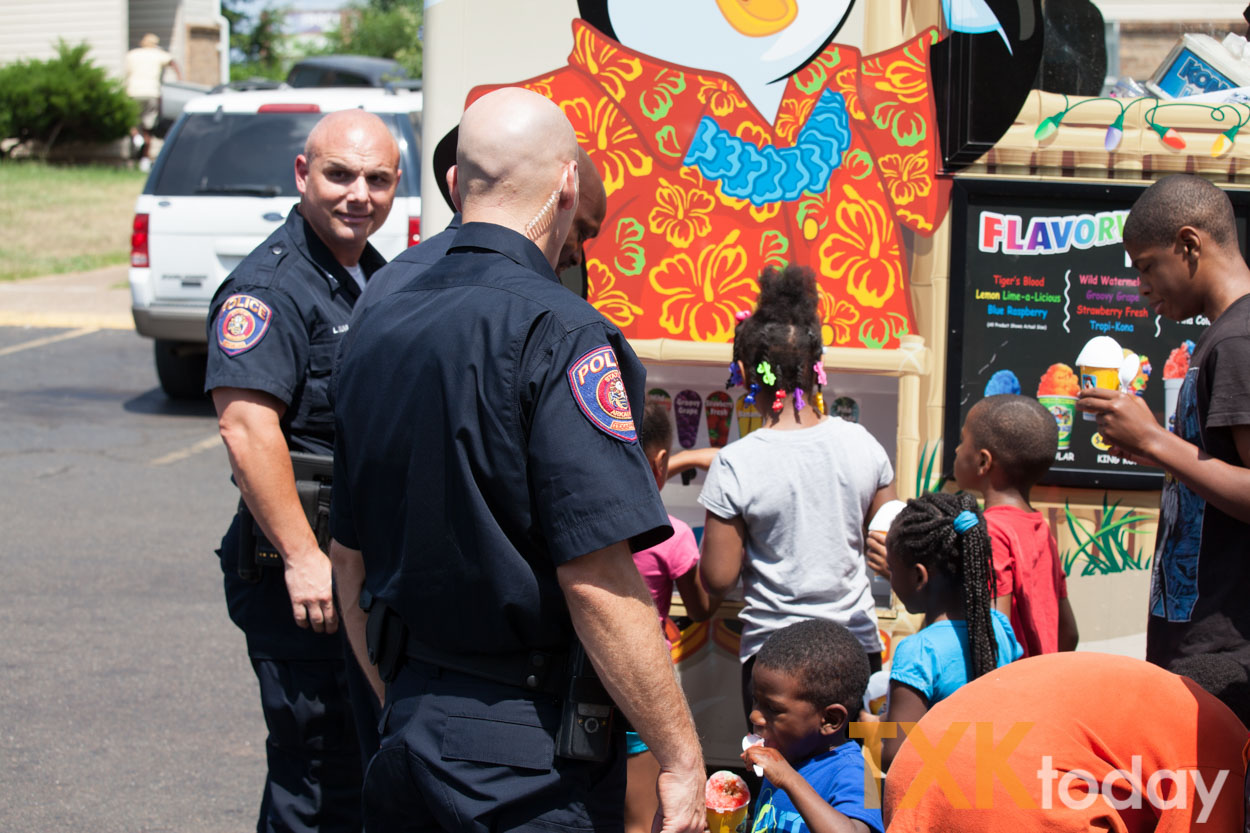 TXK Today caught up with officers handing out snow cones at Smith-Keys Village Apartments.