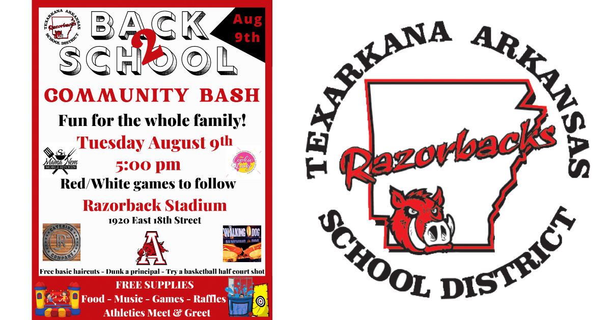 On Tuesday, August 9, at 5:00 p.m. TASD will host the Back to School Community Bash at Razorback Stadium. This event is fun for the whole family. Food, music, games, raffles, dunking booth, and free basic haircuts will be available.