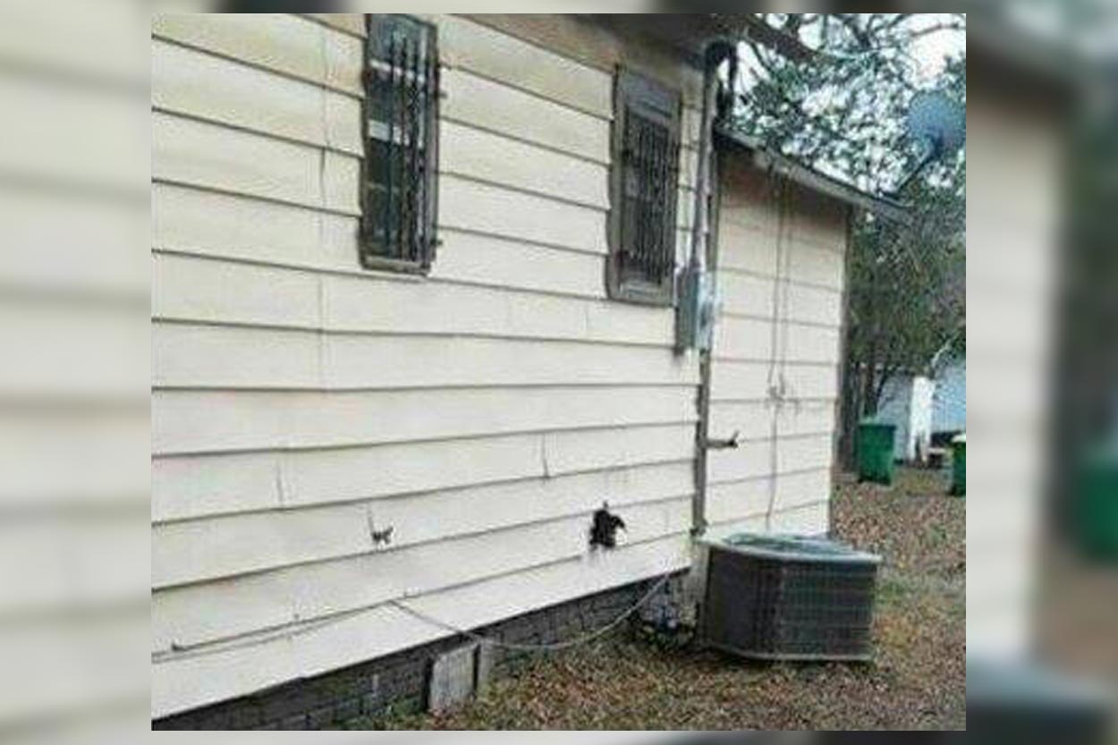 A post in a local Facebook group reported there were at least 10 dogS abandoned in a house and were chewing through the side of the house to get out.