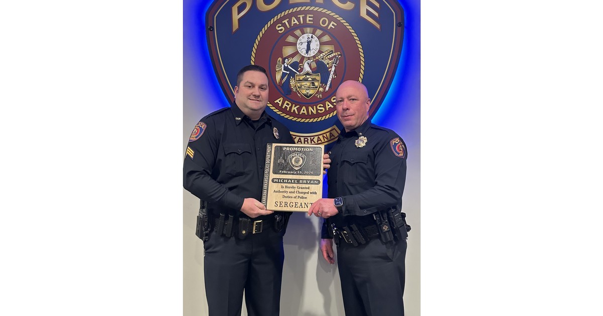 The Texarkana Arkansas Police Department announced the promotion of Corporal Michael Bryan to the rank of Sergeant, effective Sunday, February 15.