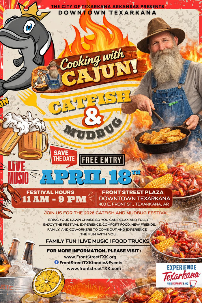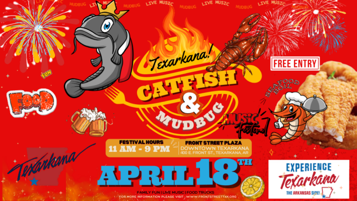 Texarkana, AR – Downtown Texarkana is turning up the heat on April 18 as the Catfish & Mudbug Festival returns to Front Street from 11AM to 9PM at 400 E Front St. This year’s festival brings an exciting addition to the lineup with featured attraction Cooking with Cajun, known for delivering authentic Cajun flavor and high-energy cooking experiences.