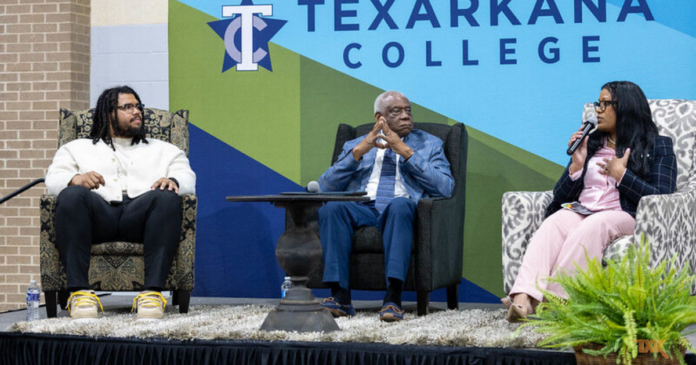 TC President Dr. Jason Smith opened the program, followed by a panel discussion moderated by Lee Williams III, Executive Director of Student Success, Retention, and TRIO-EOC. The panel featured three speakers: George E. Moore, longtime educator, civic leader, and TC Board of Trustees Secretary; Alonza Allen Mitchell, English professor at Texarkana College; and Joshua A. Wright, recent TC graduate and registered nurse at CHRISTUS St. Michael.