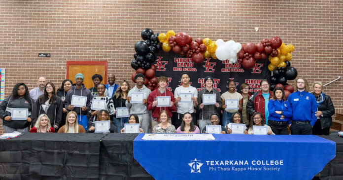 During the ceremony, students were honored with certificates recognizing their achievements. In addition, they received a graduation cord and had the opportunity to sign a DC/TC Complete banner, which will be proudly displayed at the school. Dr. Mary Ellen Young, Dean of Liberal and Performing Arts, Social Sciences, and Honors College and Phi Theta Kappa International Honor Society advisor, will be leading the event, joined by TC Coordinator of Dual Credit – Ken Smith. Members of Texarkana College Phi Theta Kappa International Honor Society Zeta Sigma Chapter, TC Honors College, Liberty Eylau Counselor, Holly Swecker, Academic Coaches for Dual Credit, Coordinator of Recruitment, Taylor Richard, and TC Board President, Derrick McGary helped with the presentation.