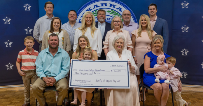 The family of Angela Kay Wall presented a $50,000 check to the Texarkana College Foundation for the Angela Kay Wall Memorial Scholarship last week at a family luncheon held in the Patman Room of the Truman Arnold Center. This scholarship will cover full tuition and fees for a nursing student each year. The first scholarship will be awarded in Fall 2023. The check was presented by members of the family who gathered to celebrate Angie’s memory.