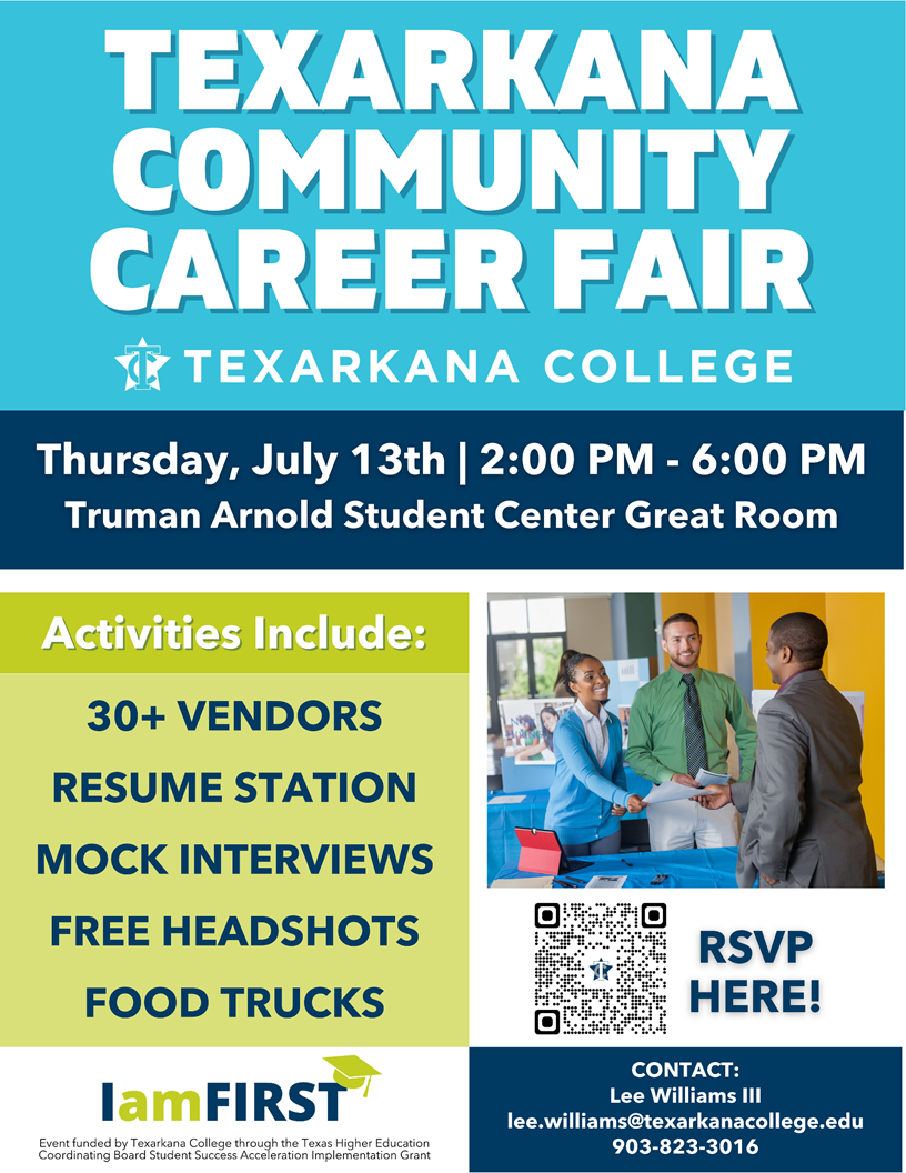 “We are thrilled to host our upcoming Community Career Fair,” said Lee Williams III, Executive Director of Student Success, Retention, and TRIO-EOC at Texarkana College. “Our goal is to support the growth and development of the Texarkana community by connecting job seekers with employers and promoting career growth and development in the area.”