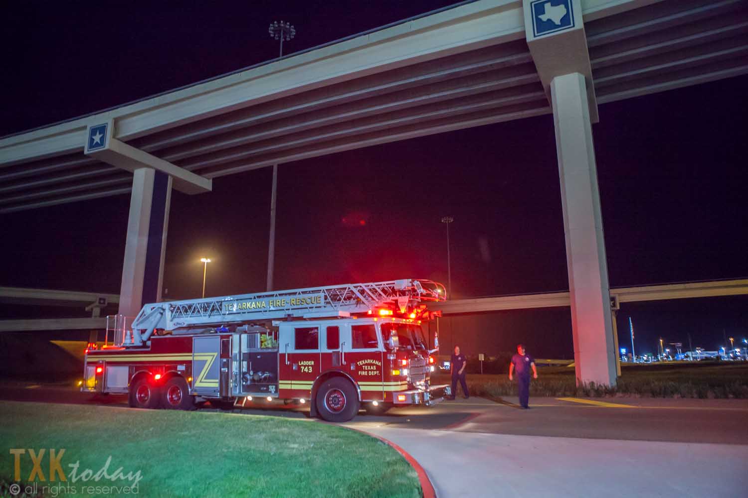 12:30 A.M. Friday | Hannah Shumaker and Jennifer O’Neal were looking at new cars at Gregg Orr Auto on Mall Drive when they heard a kitten meowing. At first they thought it was a woman screaming. It turned out the kitten was trapped at the top of the support column for the 369 flyover onto I-30 eastbound. The two women called 911 and officers Frost and Courtney of TTPD responded.