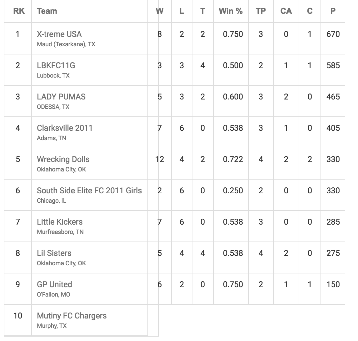 The Xtreme USA 3v3 girls soccer team from Texarkana is ranked #1 in the nation through the 3v3 Live Tournaments. The ladies won their division at the Hog Wild regional Championship in Conway Arkansas this August 4-5, 2018, and qualify to participate in the Disney 3v3 Soccer World Championships at ESPN Wide World of Sports Complex outside Orlando, Florida.
