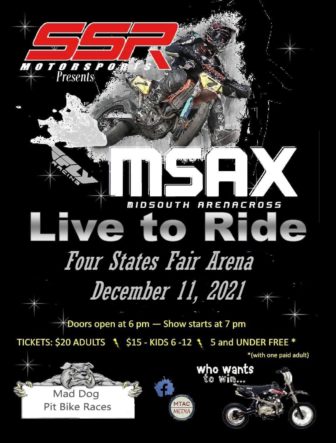 SSR Presents Mid-South Arenacross at the Four States TXK Arena – https://www.fourstatesfair.com/events/2021/arena-cross