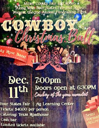 The 2nd Annual Cowboy Christmas Ball will be held December 11th in the Ag Learning Center at the Four States Fair Grounds.