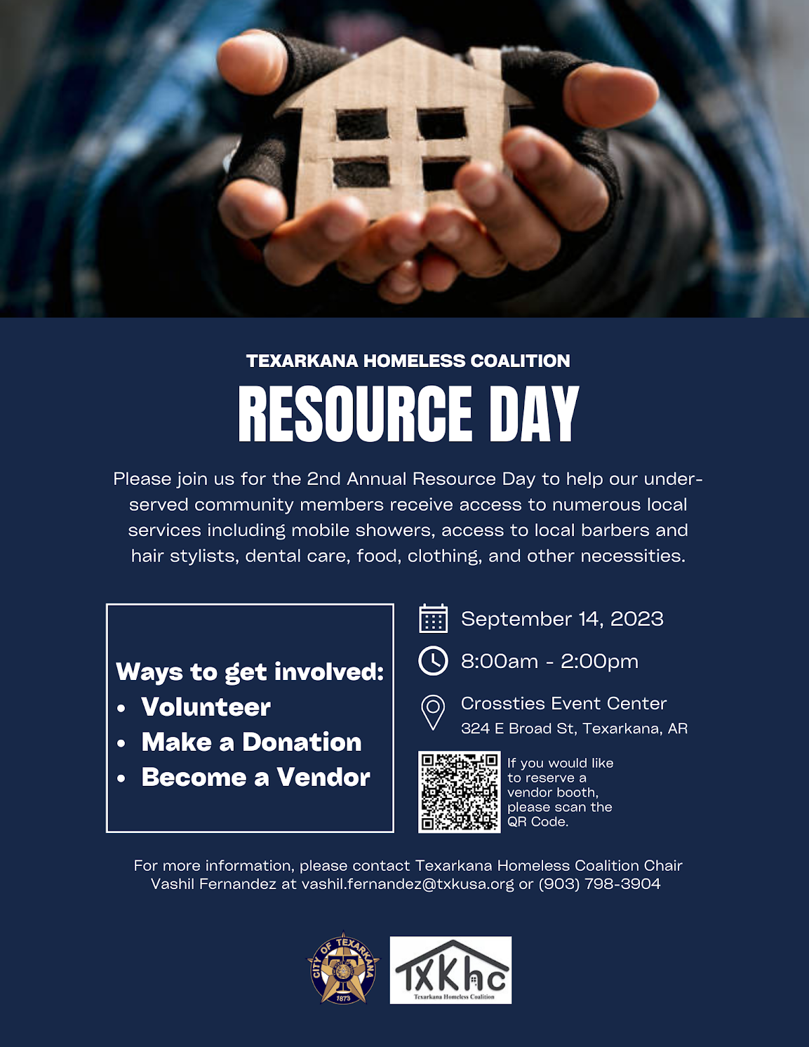 The Texarkana Homeless Coalition (TXKHC) is hosting the 2nd Annual Resource Day on Thursday, September 14th, from 8:00 am-2:00 pm at Crossties Event Venue located at 324 East Broad Street, Texarkana, AR. This day is driven by nonprofit organizations to help meet the needs of the homeless and those in poverty, and the community has the opportunity to join in on those efforts.