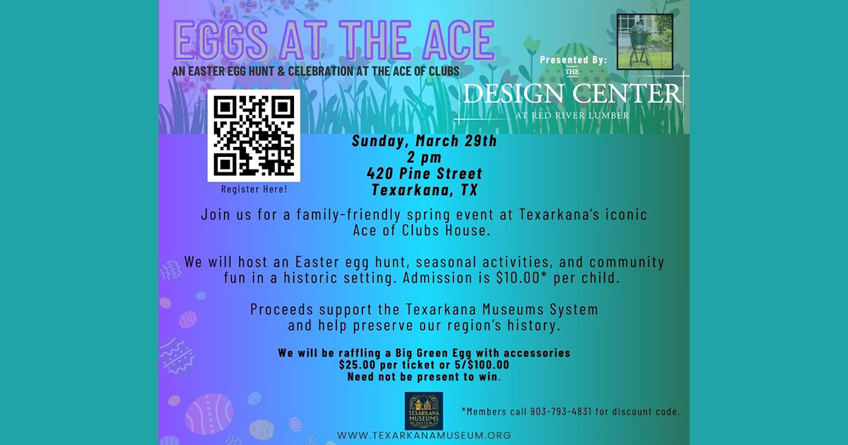 The Texarkana Museums System will host “Eggs at the Ace,” a family-friendly Easter event at the historic Ace of Clubs House on March 29, 2026.