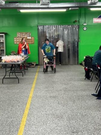 Clients were able to walk the “cat-walk” and show off their costumes as judges made their decisions. After, volunteer members from Center Point Energy were able to serve freshly cooked food for all clients and staff from Texarkana Resources. “We have been supporters and sponsors for Texarkana Resources for several years. Center Point values giving back to our local communities, and we match dollar for dollar what is put in for these events. We brought several of our newer employees with us today to share with them the importance of volunteering within the community, and are just so grateful to continue to come out to Texarkana Resources year after year. This year we are judging the costume competition, and have cooked all the food for the event, and will be serving it to everyone here today,” said Kathy Bradshaw Area Manager for Center Point Energy.