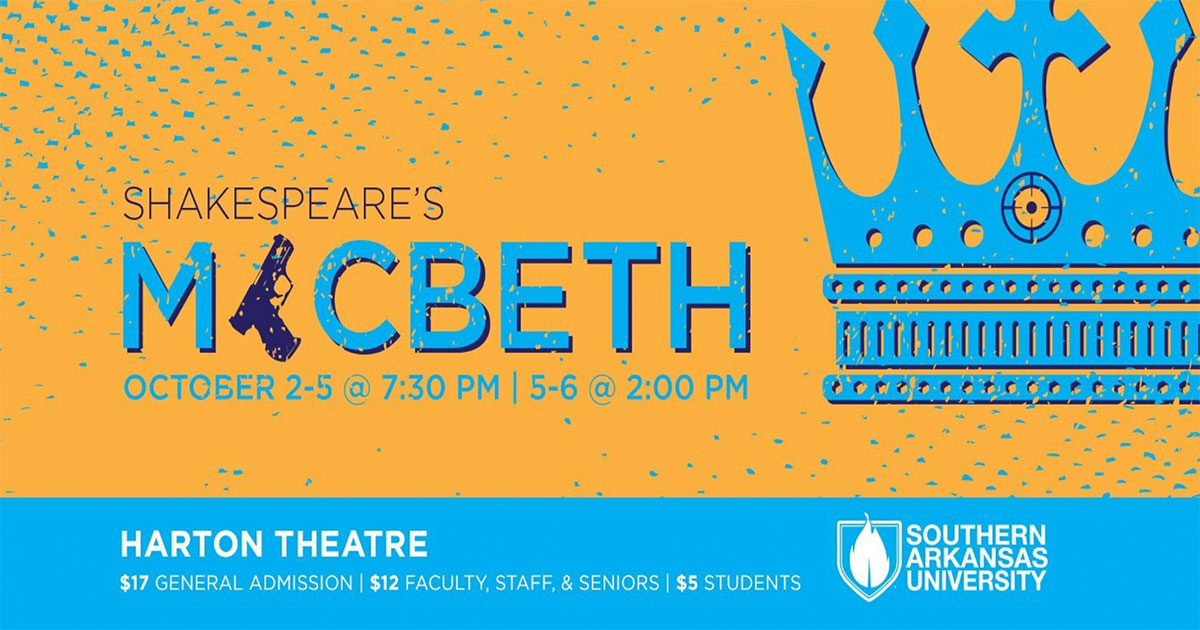 Southern Arkansas University Theatre is set to perform “Macbeth” at Harton Theatre from October 2-6, 2019.