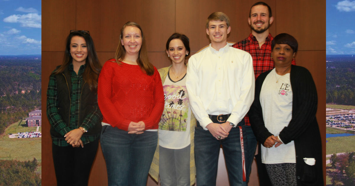 (front row from left) Nancy Gathright, first place; Mitchell Roberts, second place; and Gwendolyn Chatman, third place. Winners of the College of Education and Liberal Arts poster awards are (back row from left) Fernanda Hernandez, first place; Haley Hamilton, second place; and Caleb Hill, third place.