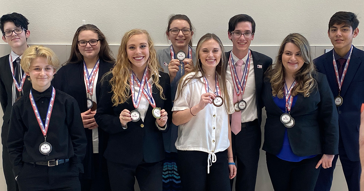 State Qualifiers are: Tarren Engle – 1st Place (Database Applications); Kenichi Pass – 1st Place (Computer Modeling); Emilee Herrington – 2nd Place (Computer Modeling); Parker Johnson – 2nd Place (Fundamental Accounting); Chloe Sawyer – 2nd Place (ICD-10-CM Diagnostic Coding); Amethyst Spade – 3rd Place (Visual Basic/C# Programming); Hayli Hamilton – 4th Place (Fundamental Accounting); Oren Smith – 4th Place (Medical Office Procedures); Lillian Davis – 5th Place (Integrated Office Applications)