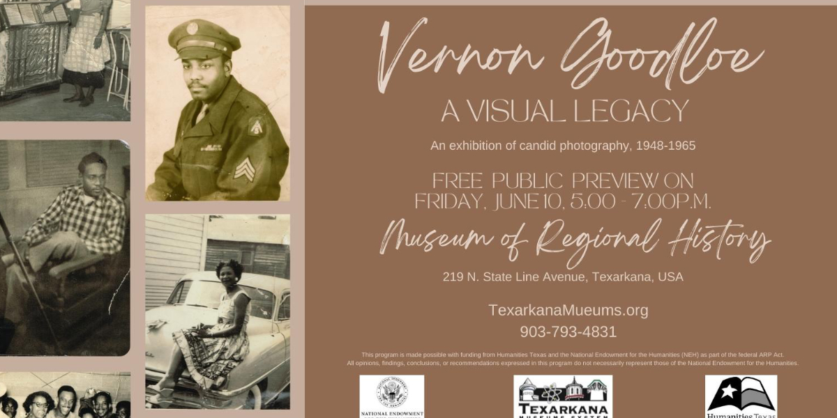 Join the Texarkana Museums System for a special exhibition featuring the photographs of Vernon Goodloe. There will be a public reception and preview on Friday, June 10 from 5:00 p.m. to 7:00 p.m. at the Museum of Regional History, 219 N. State Line Avenue in Historic Downtown Texarkana, USA. The opening reception is free and open to the public. The For more information, please call 903-793-4831 or email MoRH@TexarkanaMuseums.org.