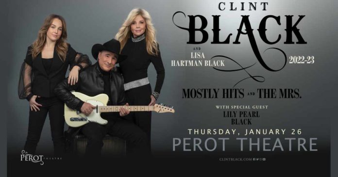 Grammy-winning Country superstar Clint Black and his wife Lisa Hartman Black are hitting the road again for year two of the “Mostly Hits & the Mrs” Tour with special guest Lily Pearl Black. They will be making a stop at the Perot Theatre on January 26, 2023. Tickets start at $40 plus applicable fees and go on-sale Friday, November 4th at 10:00 AM and available at the Perot Theatre Box Office and www.perottheatre.org. Clint and Lisa Experience VIP packages also available online at www.perottheatre.org.