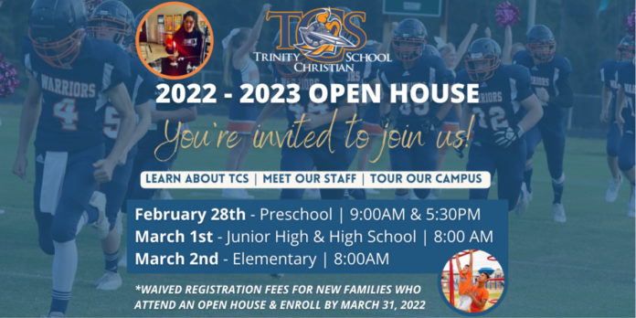 New families, who attend an Open House event and complete the enrollment process by March 31st, can take advantage of a free registration fees waiver. If you are interested in registering for Trinity Christian School’s 2022-2023 Open House, you can find their online registration by clicking HERE. Registration is not required to attend but highly encouraged.