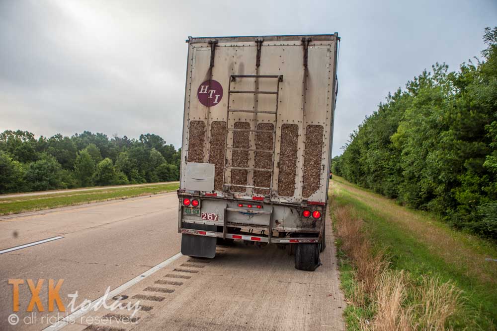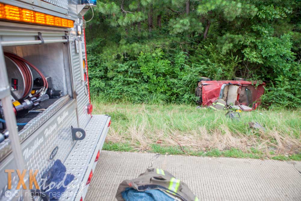 A HTI wood chip truck was pulling out of the rest area when an older model Toyota pickup truck rear ended it. According to a Texas DPS trooper on scene the driver of the Toyota was on the way to work at International Paper in Domino. The vehicle rolled several times after striking the semi-truck.