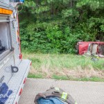 Above:LEVD & LifeNet personal carry the driver to an ambulance.