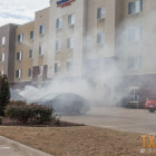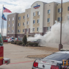 The vehicle was parked near the entrance to the hotel. Heavy flames were visible when fire trucks arrived on scene. Firemen quickly had the fire out.