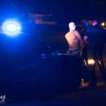 Officers soon located a man walking eastbound on Lake Dr. about half a mile away. Radio traffic between officers indicated the suspect had cuts and scratches and appeared to be intoxicated. Further investigation revealed the suspect allegedly had the same last name as the owner of the registered vehicle. The suspect struggled and three officers restrained him as they put him into the patrol car.