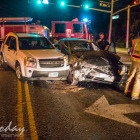 According to radio traffic two people jumped from one of the vehicles involved and ran from the scene. Police were quickly in the area and reported the two suspects in custody within about 5 minutes.