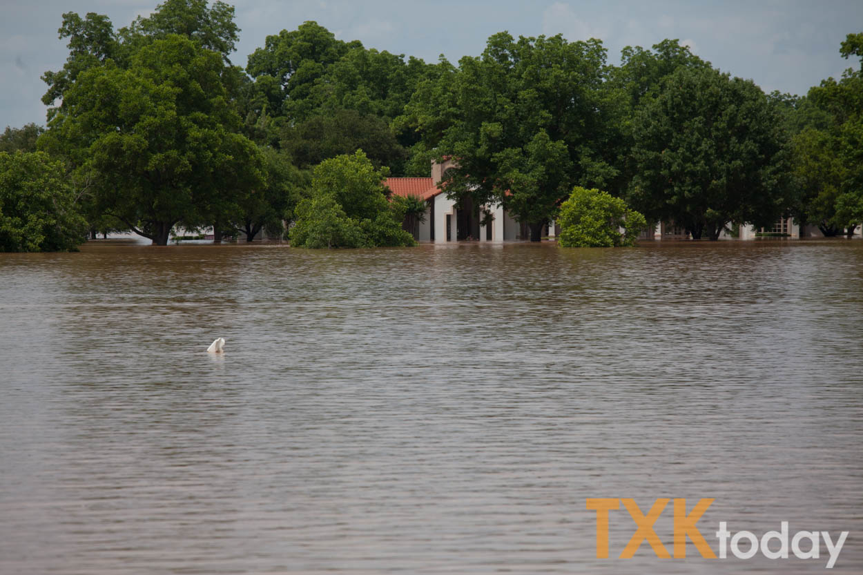 At pecan point on U.S> 259 it is currently at 34.64 ft. forecast to crest tonight at 34.9 ft.