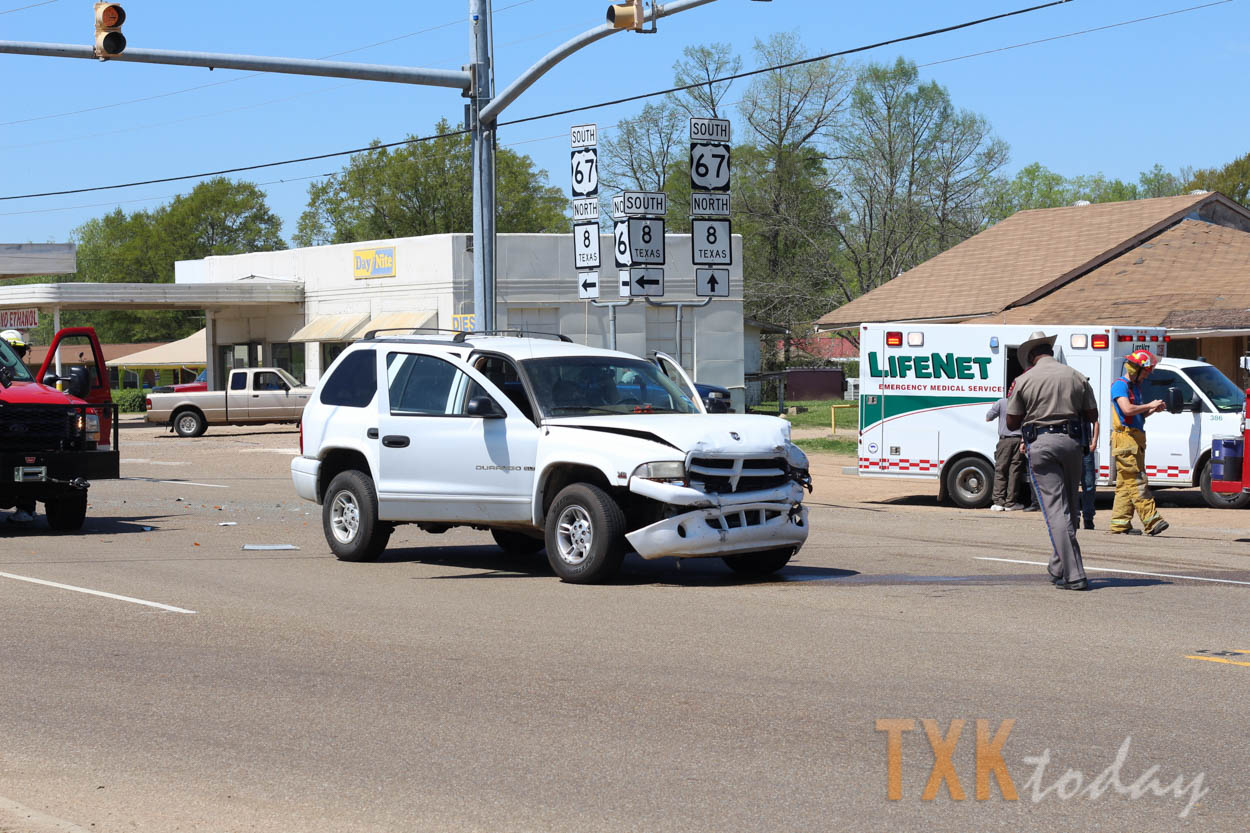 12:30 p.m. Saturday | A two vehicle accident on Highway 67 at Highway 8 left traffic detouring through Maud, Texas for around an hour Saturday afternoon.
