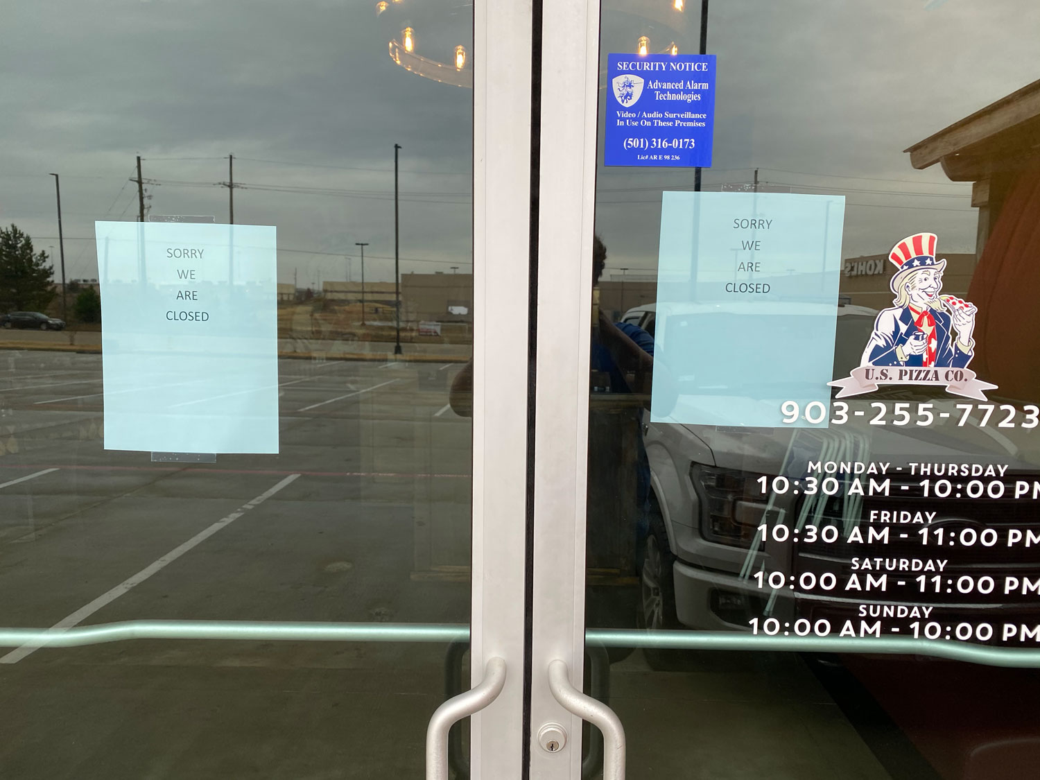 The Texarkana location of U.S. Pizza is now closed for business according to a sign posted on their doors.