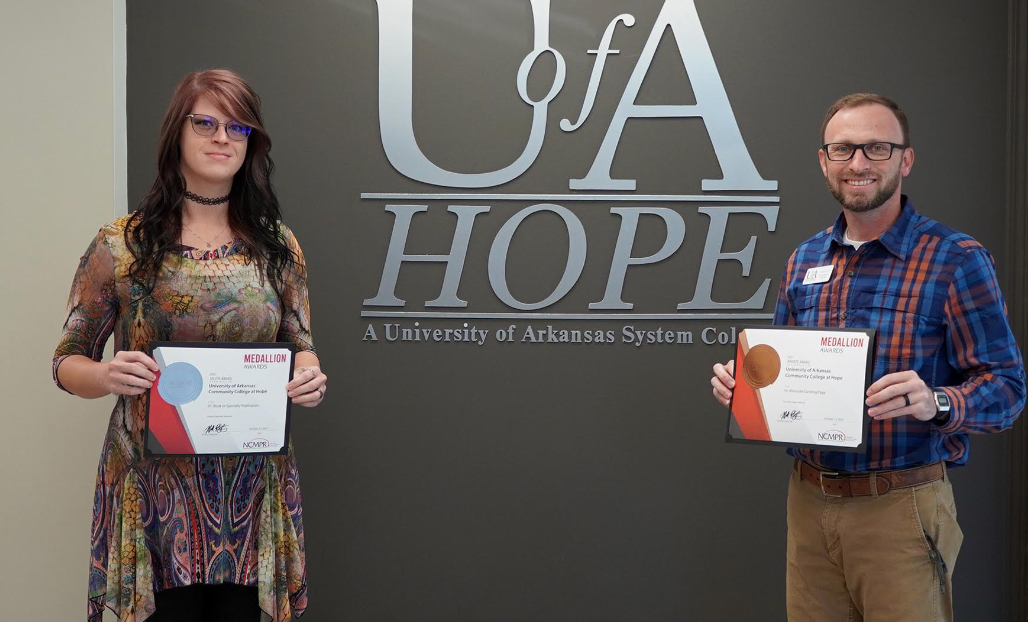 The University of Arkansas Hope-Texarkana College Relations Department was selected as the winner of two medallion awards at the National Council for Marketing & Public Relations (NCMPR) Awards competition held this year in Hot Springs, Arkansas. This year’s Medallion Awards competition drew nearly 200 entries from over 100 member colleges across District 4, which includes Arkansas, Colorado, New Mexico, Oklahoma, Texas, and Wyoming. The Medallion Awards recognize outstanding achievement in design and communication exclusively among two-year community and technical colleges. Judging was done by NCMPR peers and industry experts in one of NCMPR’s six other districts.