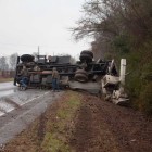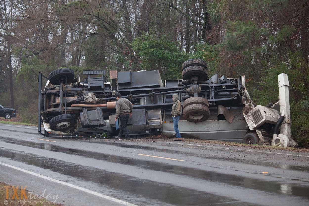 According to radio traffic the driver suffered no injuries. LEVFD, Texas DPS Troopers, and BCSO were on scene with a wrecker service removing the truck from the roadway.