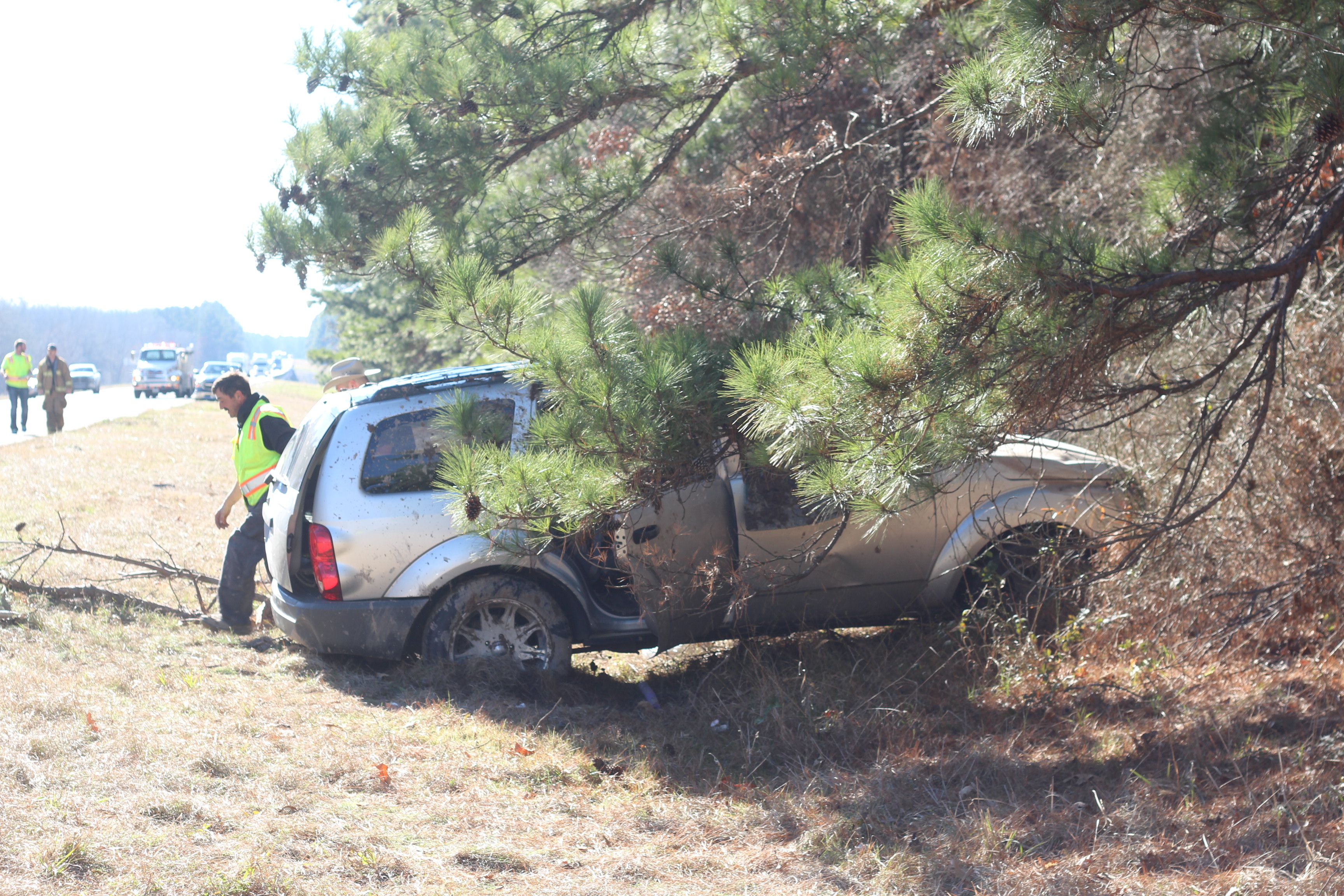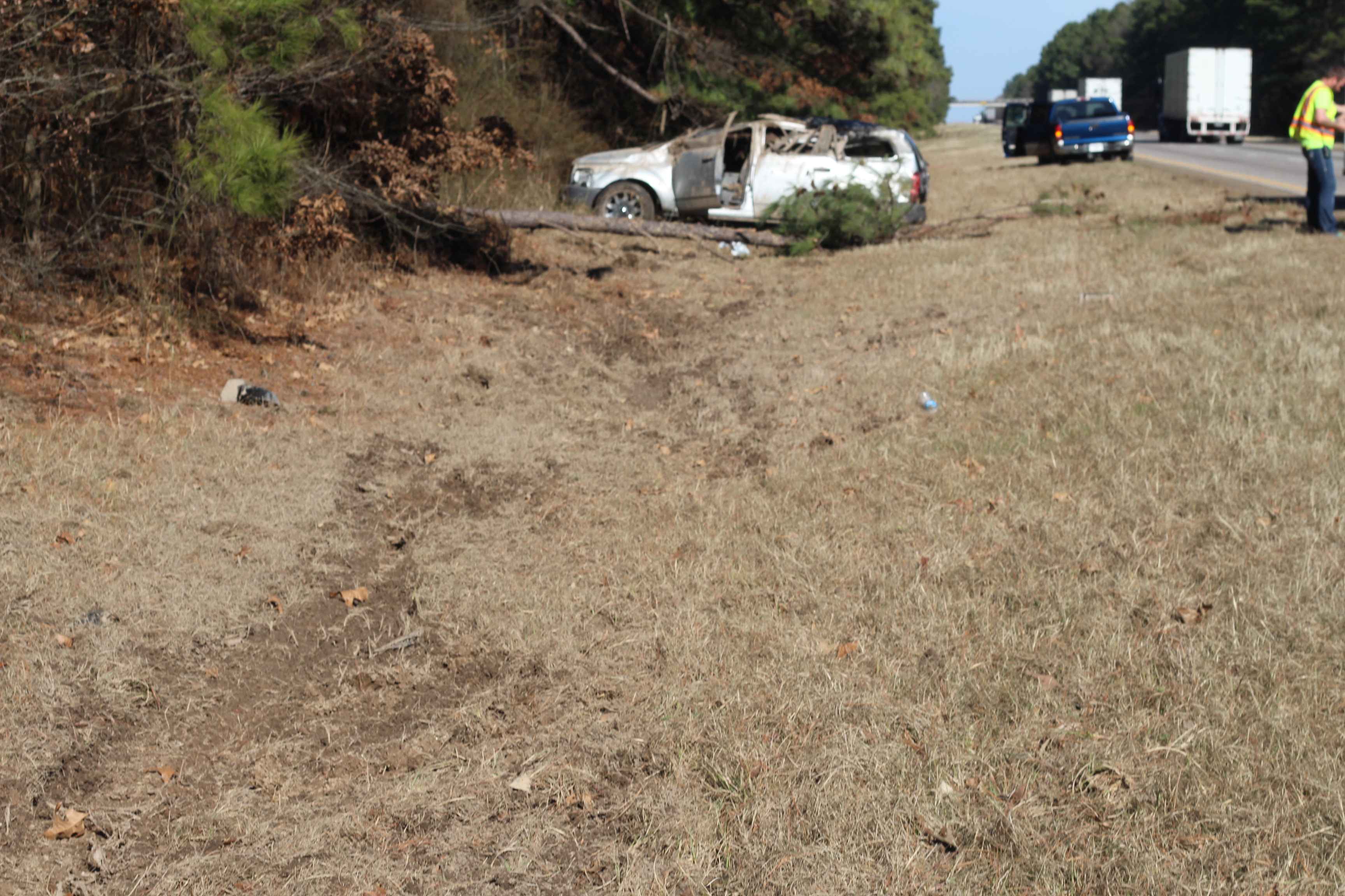 “The vehicle’s tire blew out, the rear end wiggled, lost control, rolled two times, and came to rest upright”, stated Barrett.