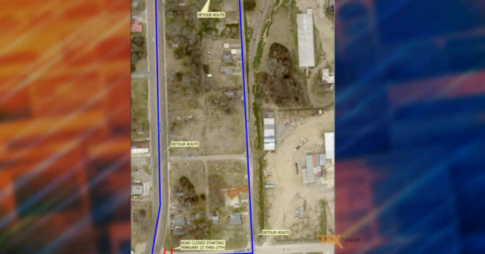 KAMPCO will be installing new sewer lines across Caddo Street during the closure. The work is expected to be completed by Friday, February 27th.