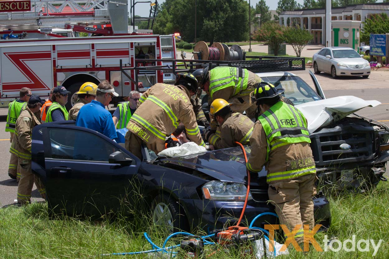 12:30 p.m. Thursday | Firefighters with Texarkana, Texas Fire Department extricated a 19 year old woman trapped in her vehicle after a two vehicle collision in the 5200 block of N. State Line.